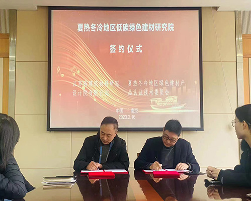 近期,我司與綠色建材產(chǎn)品認證技術(shù)委員會夏熱冬冷地區(qū)工作委員會在江蘇省建筑材料研究設計院有限公司簽署了夏熱冬冷地區(qū)低碳綠色建材研究院合作協(xié)議。