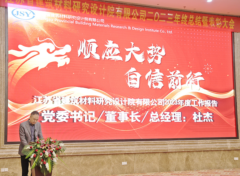 2024年1月24日下午,院公司2023年終總結(jié)暨表彰大會在華江飯店華江廳召開。江蘇中江國際投資有限公司董事長、總經(jīng)理、院公司董事楊軍,中江國際集團(tuán)黨委組織部(人力資源部)副部長、人力資源公司總經(jīng)理、院公司董事田忠秀,南京大學(xué)法學(xué)院黨委副書記、院公司獨立董事馬駿,國家市場監(jiān)管總局、住房和城鄉(xiāng)建設(shè)部、工業(yè)和信息化部夏熱冬冷地區(qū)綠色建材產(chǎn)品認(rèn)證技術(shù)委員會秘書長李安良,中江國際集團(tuán)審計部部長助理、院公司監(jiān)事侯超,院公司黨委書記、董事長、總經(jīng)理杜杰,院公司副總經(jīng)理葉明武、張國華,院公司總經(jīng)理助理郁超,院公司財務(wù)負(fù)責(zé)人陳立俠等領(lǐng)導(dǎo)、嘉賓及全體員工160余名出席大會。